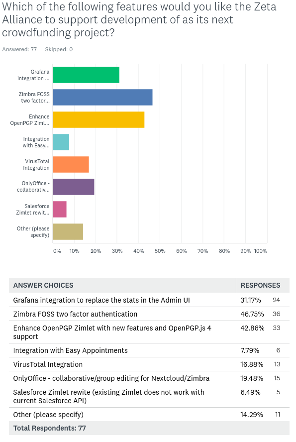 Thanks for voting on the Zeta Alliance Crowdfunder Survey Monkey. We have gotten 77 responses
